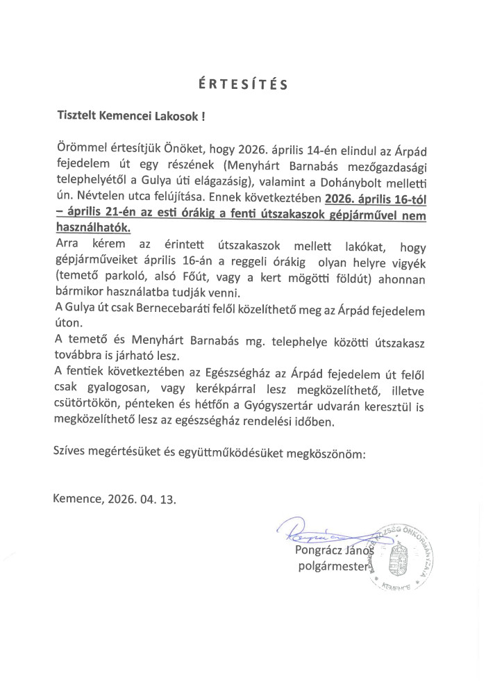Beküldte Kemence Község ... - p, 12/06/2024 - 10:22